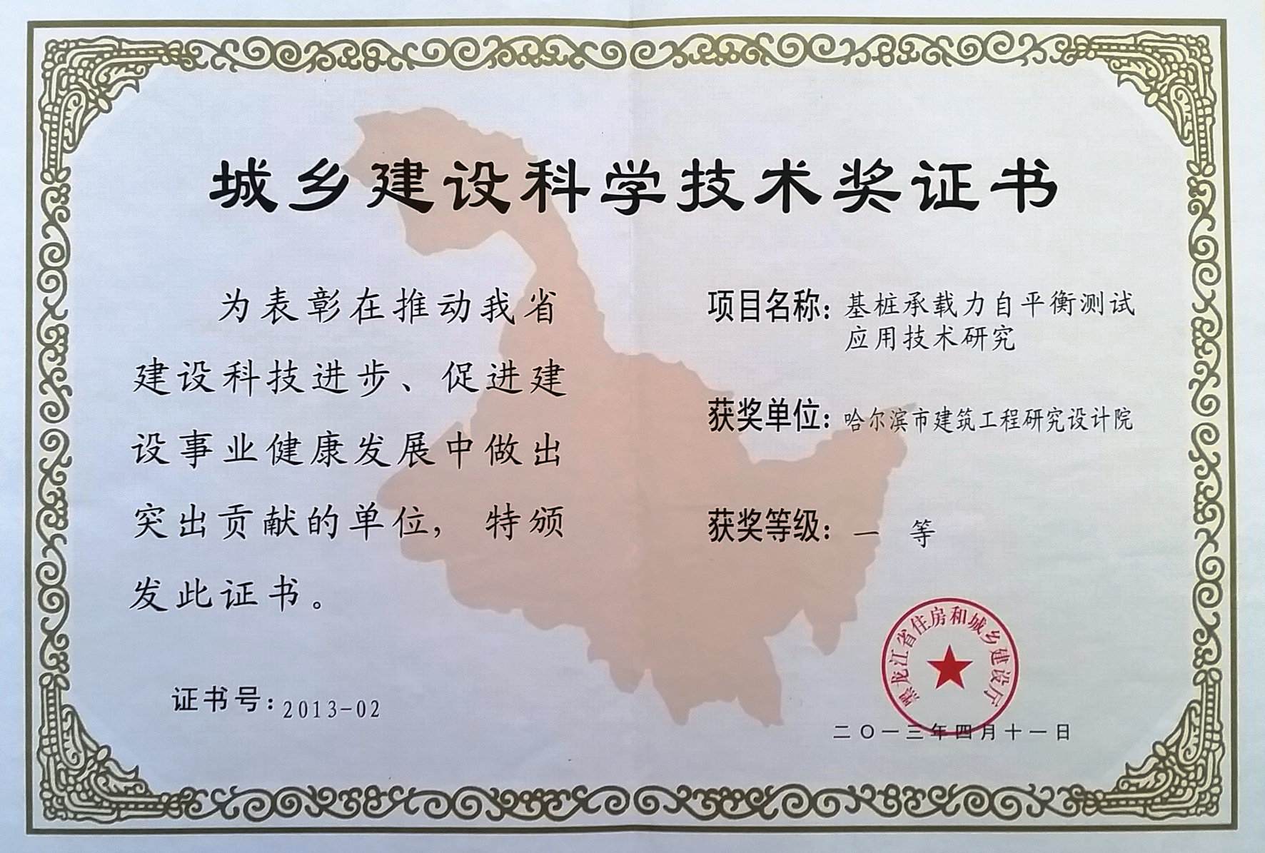 自平衡法測(cè)試成果證書(shū)